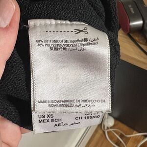The Juicy Couture Women's Black Sweatshirt in XS size features ruffled sleeves, making it a stylish yet comfortable option for activewear. Made from a blend of polyester and cotton, this pullover sweatshirt has a crew neck and long sleeves, perfect for the fall and winter seasons. The solid black color adds a versatile touch, while the ruffle design gives it a trendy and grunge-inspired look. Machine washable for easy care, this sweatshirt is a must-have for any woman's wardrobe.