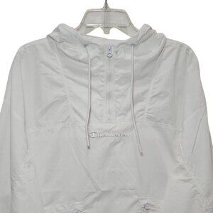 Champion Classic White Hooded Anorak Wind Jacket Small New 1/4 Zip Spellout