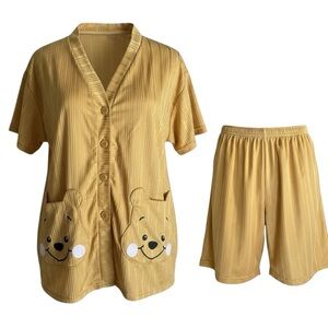 Stretchy Lightweight Pajama Shirt & Boxer Set with Bear Motif Pockets is in good preowned condition.