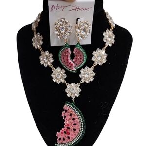 🍉🔹️Betsey Johnson🔹️ Backyard Rhinestone Watermelon Earrings Necklace Set