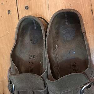 Women's Birkenstock Buckley 40 Suede Leather Clog Gray Taupe,