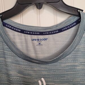 Life is Good Blue Sleep Shirt "Start Me Up" Coffee Graphic Size M NWT