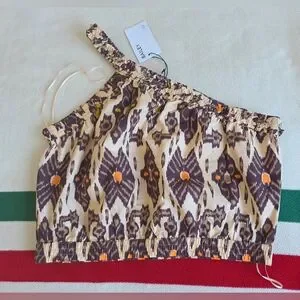 Bailey 44 One-Shoulder Aztec Print Crop Top w Elasticized Hem & Strap NWT S Med