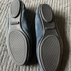 Chic suede flats with signature logo detail. Comfortable and stylish for everyday wear.