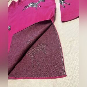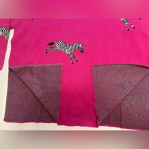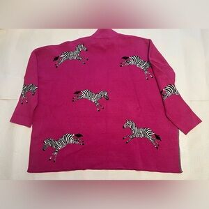 Stylish pink sweater with zebra print design. Perfect for a bold look.