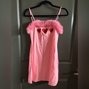 Embrace a playful look with this stylish pink mini dress, adorned with charming heart details. Perfect for any fun outing.