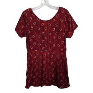 Obey Size M Dress Rouge Mini Floral Crinkle Velvet Button Front Ox Blood Red