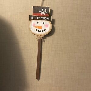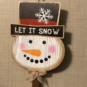Brighten your home with this charming snowman holiday decor featuring a 'Let It Snow' sign. Perfect for adding a festive touch to any room.