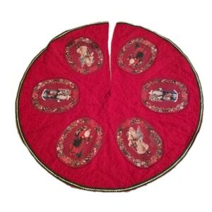 VTC TLC Grennock Santa Christmas Tree Skirt Red Felt 58" Oval Panels Cottagecor