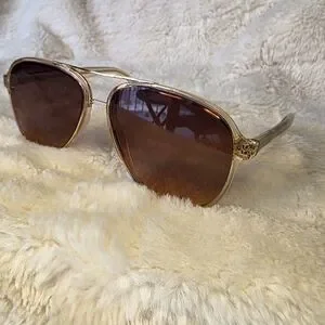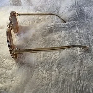 Enhance your look with these chic gold-tone sunglasses. Perfect for sunny days. No nose pads on these so it won't get tangled in your hair when you throw them on top of your head!