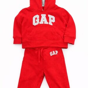 This adorable GAP two-piece set includes a hooded sweatshirt and matching joggers — perfect for playdates, school, or everyday comfort. True to size 2T with vibrant red color and comfy fit.