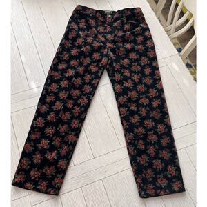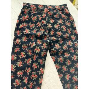 Jones NY Sport stretch straight leg brushed cotton & spandex ladies floral pants. Rusty red, green & black. Size 14. Velvet feel.