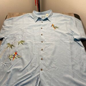 Bamboo Cay Blue Hawaiian Camp Shirt Tropical Parrots Toucan Men's 4XL