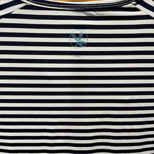 Chic striped swim top with short sleeves. Ideal for casual wear. Comfortable and stylish. Size XL, in good preowned condition.