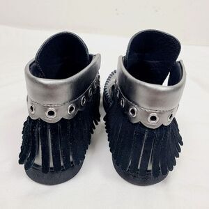 Coach Roccasin Cut Out Sneakers 5 Black Metallic Silver Studded Fringe Booties