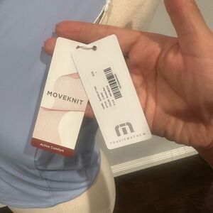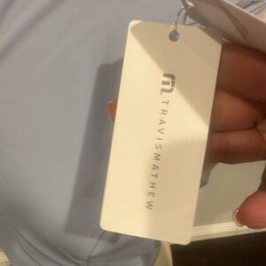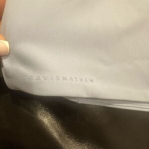 tonal Travis Mathew logo on the back left hem