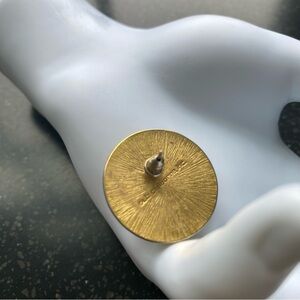 Vintage Liz Claiborne Pierced earrings, featuring a gold-tone design with tortoise Lucite, perfect for adding a touch of elegance to any ensemble. The vintage-inspired style showcases a unique circular pattern, making them a standout accessory for formal occasions.