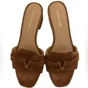 Chic tan suede mules by Veronica Beard. Stylish and versatile for any outfit.