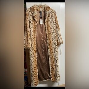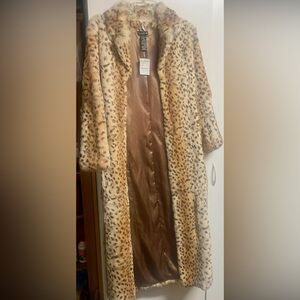 This is Brand new BEBE Coat with tags never before worn and ready for her first owner This is a very RARE Sold Out! Hard to find Real Fur Coat 100% dyed rabbit fur, beige polyester lining, slant pockets, no back vent, 3 eye hooks in front, PRISTINE Brand New condition with Tags!