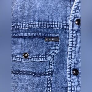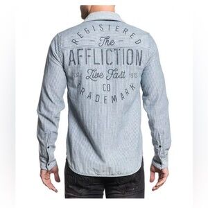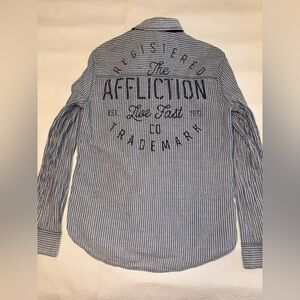 Affliction Reversible Dark Blue Denim Shirt with Graphic Back Size Medium