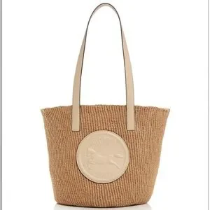 Large Horse Medal basket bag in fair-trade paper & calfskin
