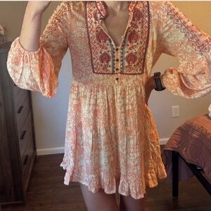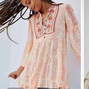 Anthropologie Boho Claudia embroidered babydoll tunic top, Size Medium