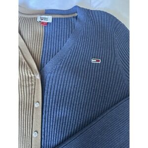 Y2K Inspired Colorblock Tommy Jeans Women's Cropped Button Down Cardigan Size L