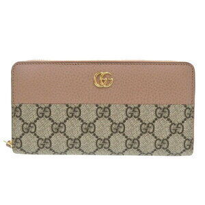 Gucci GG Marmont Supreme leather pink beige round zip long wallet