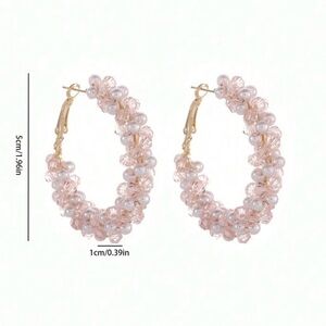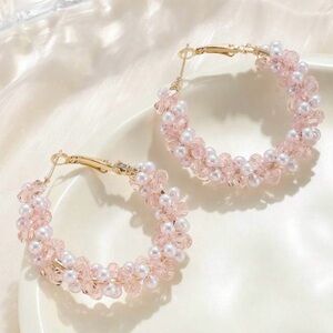 These stunning hoop earrings feature delicate pink beads and elegant gold accents, perfect for adding a touch of sophistication to any outfit.