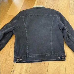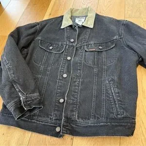 Classic vintage Lee Storm Rider black denim jacket with cozy plaid blanket lining and corduroy collar š¤ A forever piece for any vintage or workwear lover.