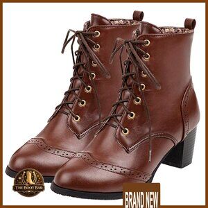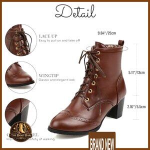 Chunky Heel Ankle Boots Lace Up Side Zip Dress Shoes Elegant Chic Retro