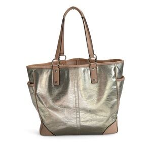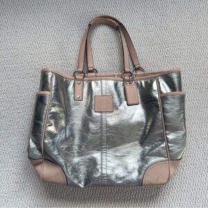 Vintage 100% Authentic Y2K COACH Silver Metallic Leather Tote Bag