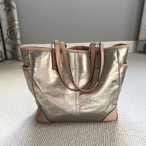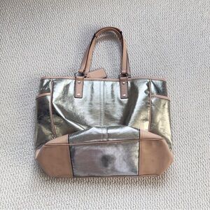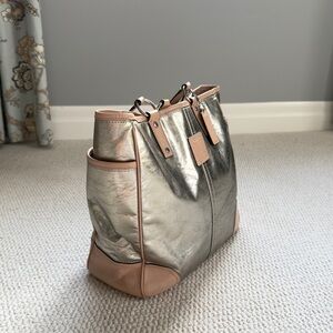 Vintage Coach Metallic Silver and Tan Leather Tote