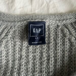 This classic GAP sweater in a solid gray color features a crew neckline and a timeless vertical ribbed pattern. Crafted from medium-weight knit, it offers a textured feel and a comfortable fit, making it a versatile addition to your wardrobe.