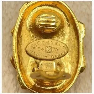 Authentic and Elegant 1994 CHANEL Coco mark engraved oval gold plated earrings with box! Vintage gold clip-on earrings by Chanel. Perfect for adding a touch of luxury. Great condition! Highly Collectible! Make offers!