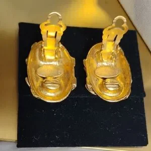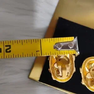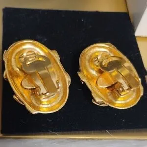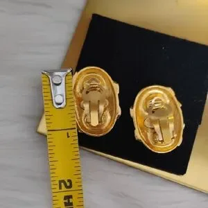 Authentic Chanel 1994 CC Coco Mark Oval Gold Plated Clip-On Earrings W Box