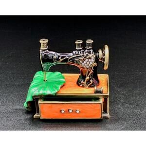 Perfect as a decorative keepsake, ring box, or thoughtful gift for sewing lovers, quilters, fashion designers, or collectors of miniature enamel boxes. Displays beautifully on a vanity, shelf, or desk.