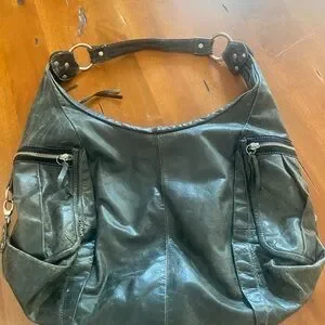 Great hobo style bag from Tano with natural distressed leather. Has zipper exterior side pockets. Very good pre loved condition.