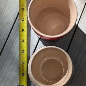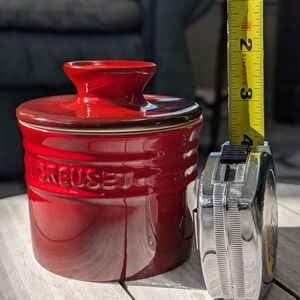 This is a beautiful, new, no chips, Le Creuset stoneware butter bell. It features the popular Le Creuset Cerise Red. Elegant and durable design.