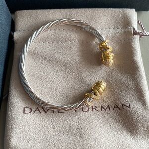 Sophisticated bracelet by David Yurman. Features a twisted silver design with striking gold details. Ideal for elevating any look.