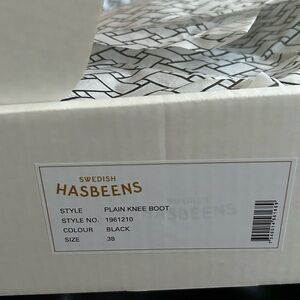 Swedish Hasbeens Black Heeled Boots NIB