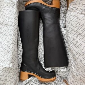 I’m sad to reposh these beautiful boots from Swedish Hasbeens. They’re just a bit too small. Sold out everywhere! Elegant black leather boots. Features sturdy brown heel. Perfect for stylish outings.