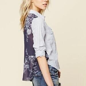 Free People Party in The Back Striped Sheer Floral Shirt Blouse Top Button Sz M
