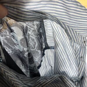 * Colors : Striped blue and white front / Floral sheer back in bluish gray