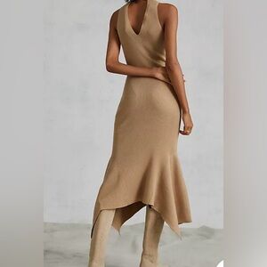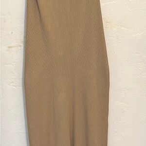 Smooth knit camel/ tan ( cedar) colored sleeveless mermaid style midi dress