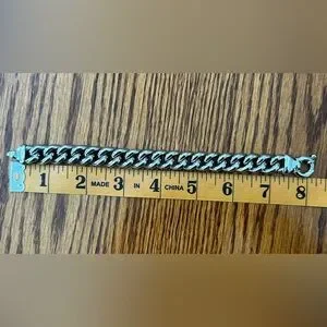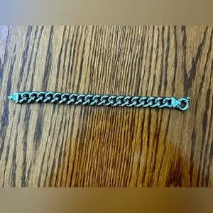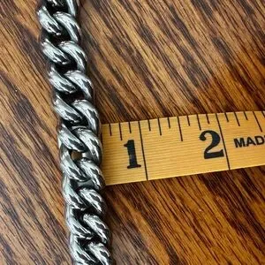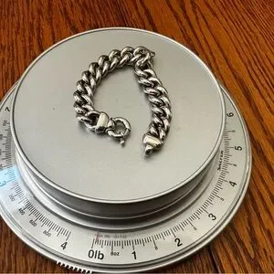 Very pretty, solidly made, sterling silver women’s bracelet with a stylish chunky clasp. It looks especially nice with a pair of jeans or with office casual dress. Condition is like new. It keeps its polished look all by itself with little to no effort. If you ever felt the need, a quick wipe with a soft cloth is all it requires. My kitchen scale weighs it at somewhere around an ounce or slightly over that. I can easily sell it by weight alone locally but was hoping someone here might appreciate it for its aesthetic value as well.