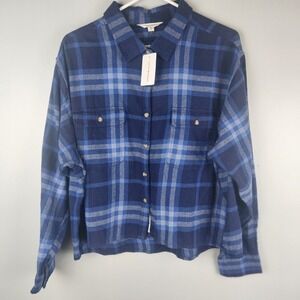 Lucky Brand Womens XL Blue Plaid Cropped Shirt Flannel Button Up Long Sleeve