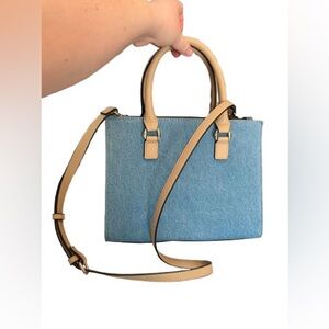Aldo Tote Chambray Denim Convertible Satchel/Crossbody Handbag with Tan Accents