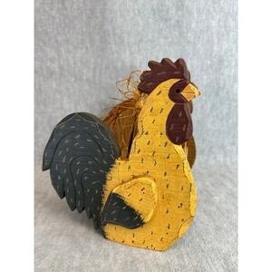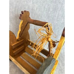 Vintage Wooden Rooster Basket Eggs Holder Rustic Handcrafted Decor Yellow Brown