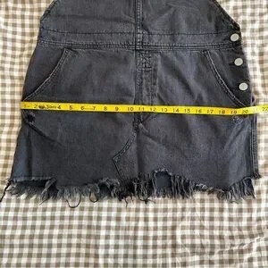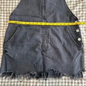 Free People Black Denim Distressed Hem Overall Mini Dress